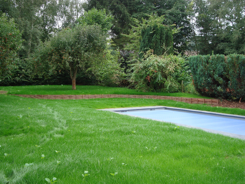 Terrassement, cleonage en azobe, engazonnement